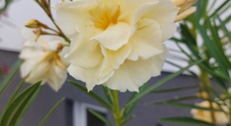 W naszym gospodarstwie dostępne są oleandry w kolorze różowym, czerwonym, białym i ecru (widocznym na zdjęciu).